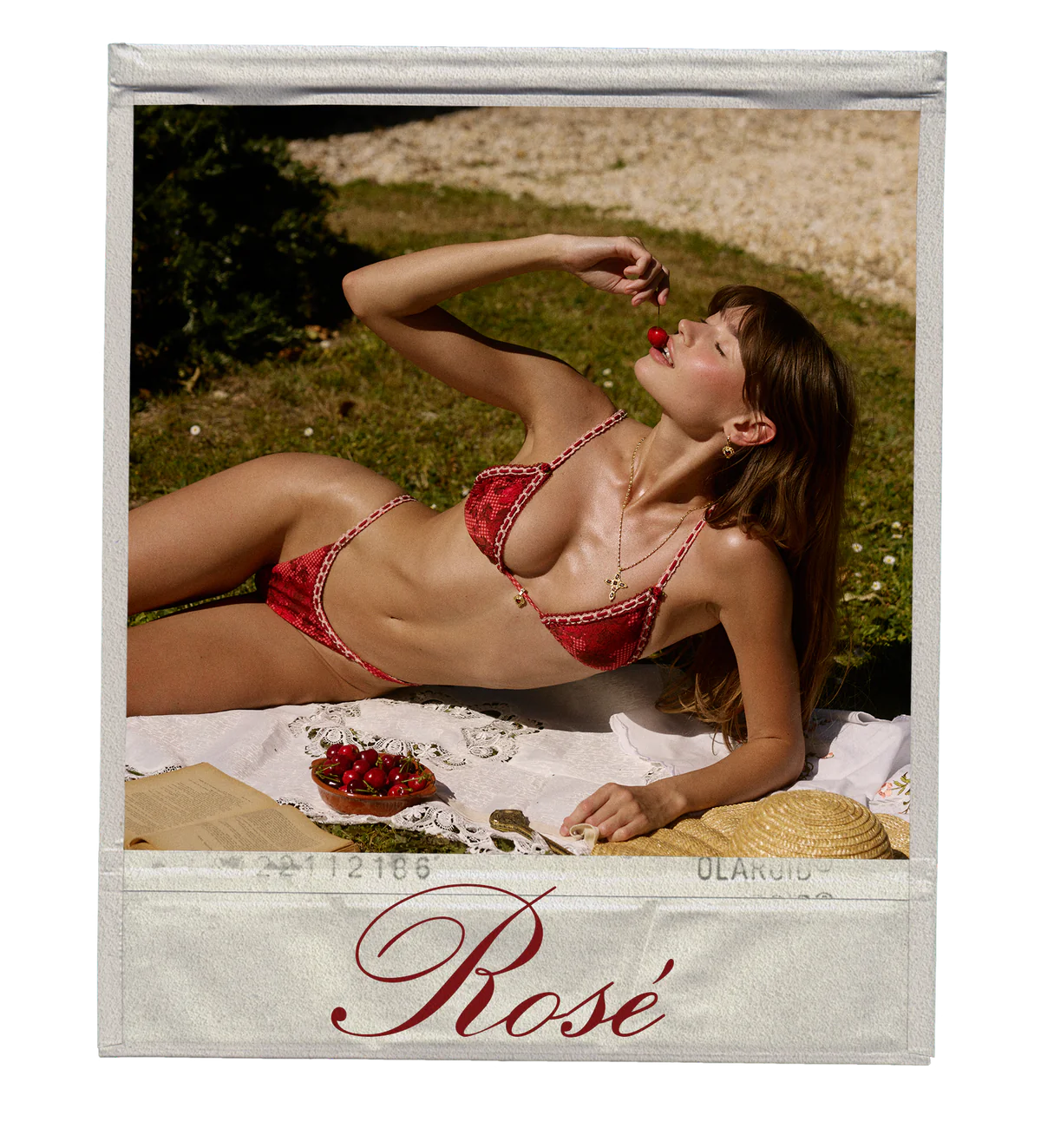 Striking crimson petals cascade across a classic gingham base, Rosé feels like a love letter found between the pages of time.