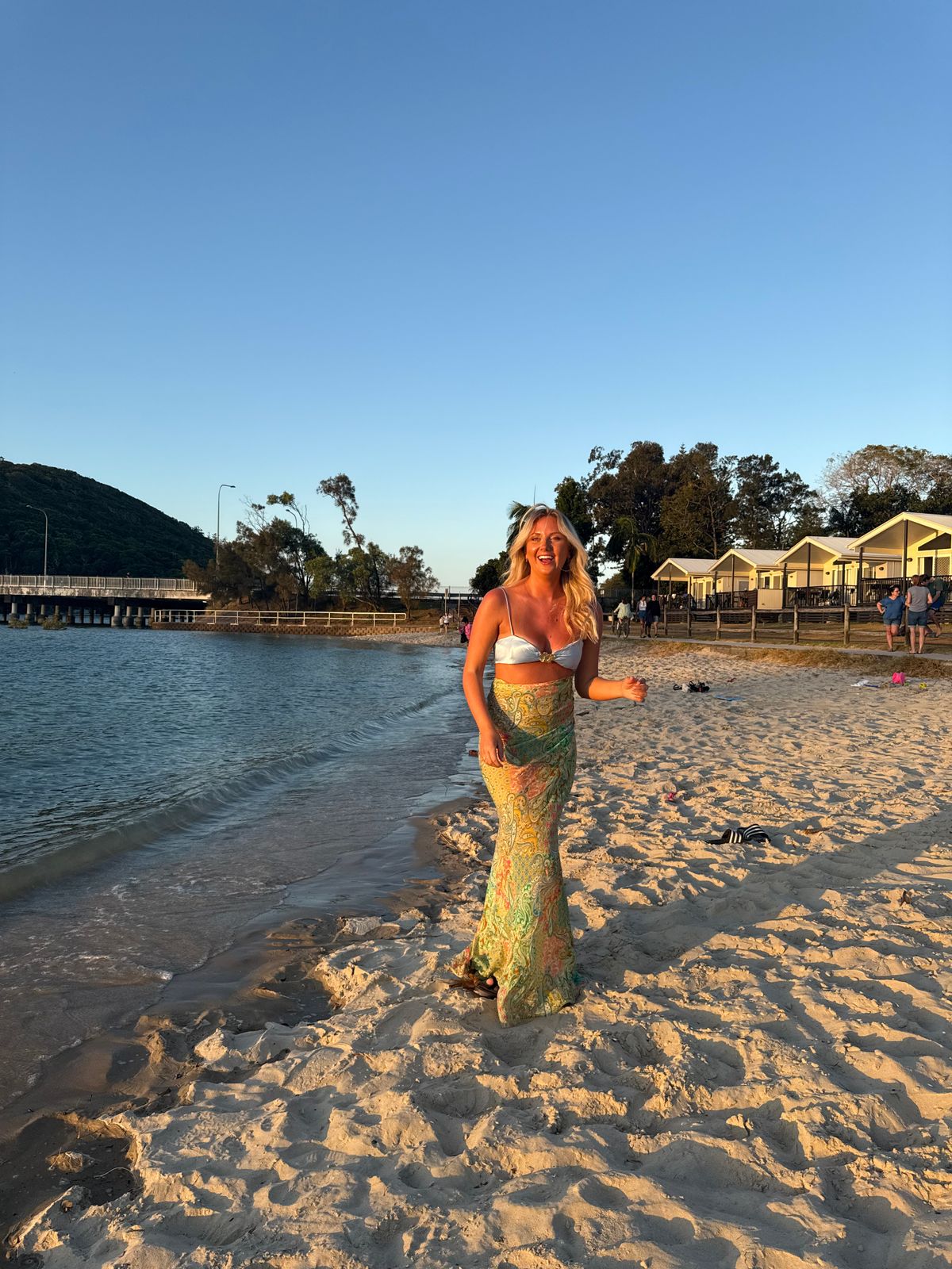 I’m typically XXS and this still fit perfect on me! Love that the top is adjustable so I can hook it tighter as well. This doesn’t drag too much on the ground for me too, so excited to wear this on vacation!