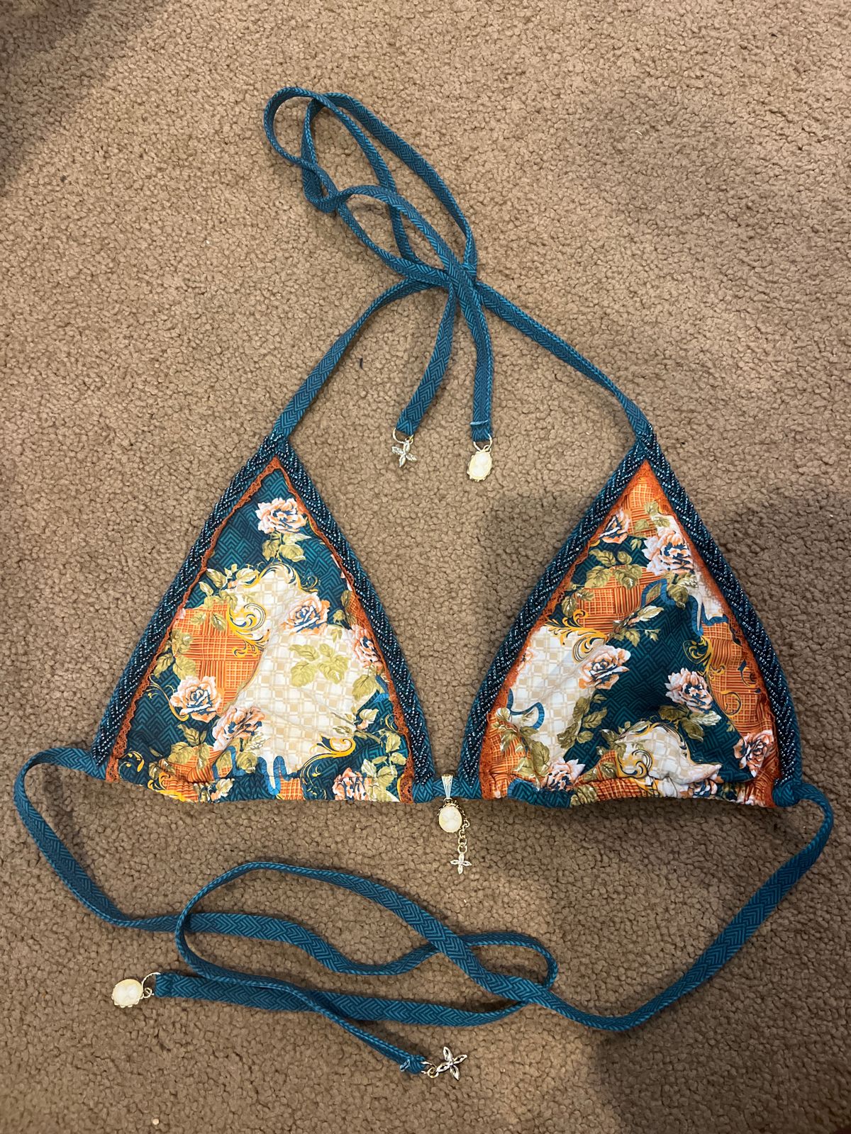 This top is a summer must have! It is the perfect fit and hugs your body in all the right places. When I wear this bikini top I feel confident and comfortable! The detailing and the print are gorgeous and will definitely turn heads! Highly recommend!! 🫶