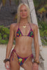 This halter-style triangle bikini top features adjustable cups and a supportive tie-back closure. It is accented with a rich plum cotton trim, hand-beaded contrast binding and detailed charms on the centre-front and end ties. This purple bikini top pairs perfectly with the Malaga bottom or any bikini bottoms from the Ayana bikini range.
